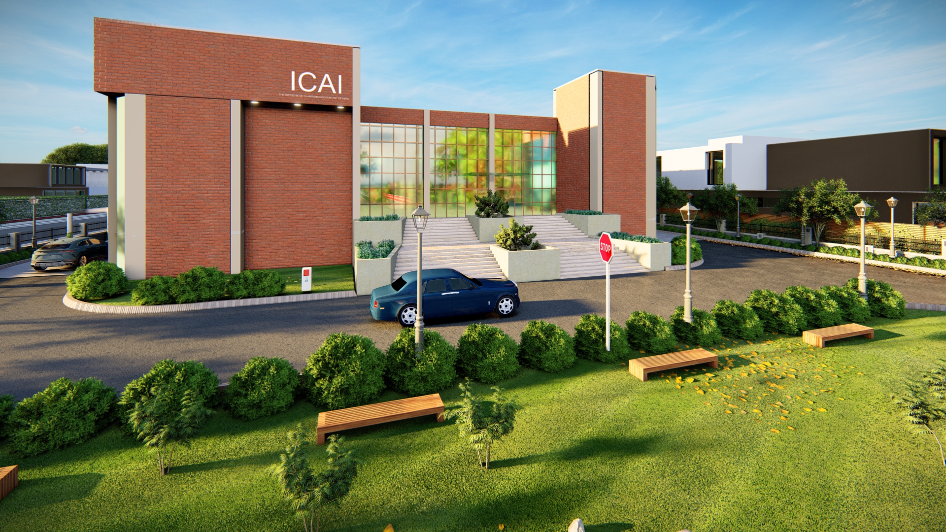 FRONT VIEW OF ICAI INSTITUTIONAL BUILDING AT MANESAR